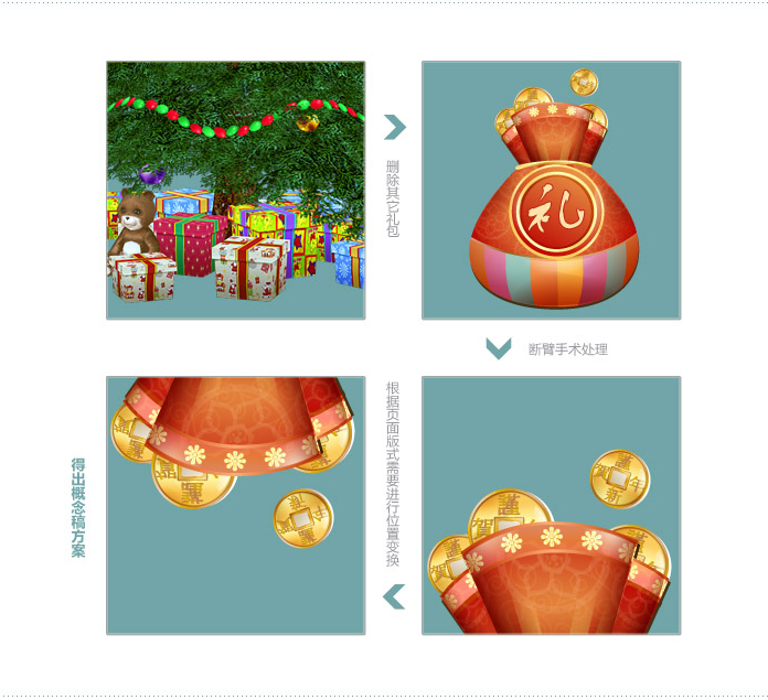 設(shè)計(jì)的方法多種多樣。只要切合主題,并且美觀,怎么樣都沒有錯(cuò)。不過我們今天要嘗試用我們的“斷臂”方法為之動手術(shù)。