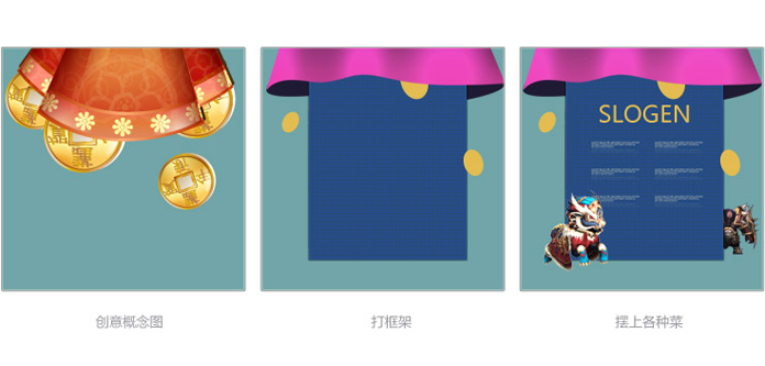 動完手術(shù)后,現(xiàn)在要做的基本就是縫合傷口。 1.創(chuàng)意概念圖,在概念圖的時(shí)候我們可以根據(jù)主題進(jìn)行各種淘汰各種擺。 2.選定了創(chuàng)意,就開始正式的頁面打框架。味內(nèi)容選定位置。給SLOGEN留出風(fēng)水寶地。 3.擺上需求中要的各種文字圖片。
