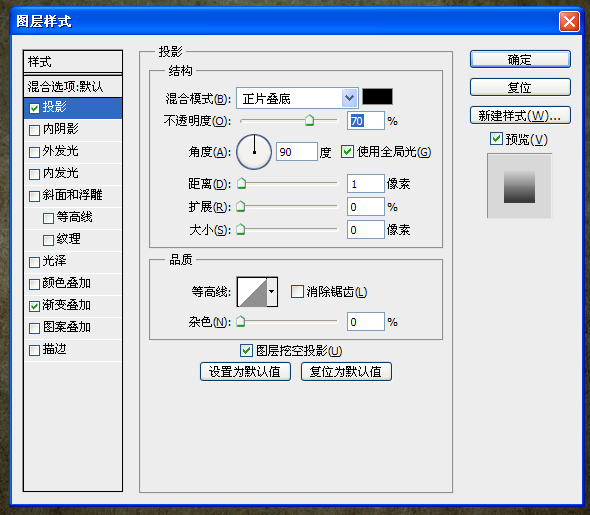 第六步:我們?cè)谶x擇“2”圖層,已同樣的方式制作一個(gè),然后到混合樣式里面設(shè)置,如下: