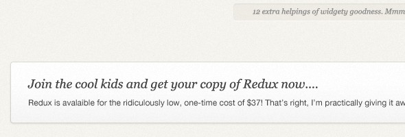 四、微妙的陰影注意觀察Redux暗色背景上的淺色文字,你會(huì)發(fā)現(xiàn)它們都被添加上了投影效果?,F(xiàn)在我們可以使用CSS3中的text-shadow屬性來(lái)完成文字的投影設(shè)計(jì),代替了在Photoshop中完成此項(xiàng)工作。而且使用CSS3來(lái)給文字添加陰影自由度更高,在瀏覽器支持的情況下,你可以給任意文字添加你想要的陰影效果。當(dāng)然IE8以下版本的瀏覽器是不支持此項(xiàng)屬性的,這是我們?cè)谠O(shè)計(jì)中需要注意的地方。另外,和前面提到的其它設(shè)計(jì)細(xì)節(jié)一樣,陰影的效果也要足夠柔和,不可過(guò)于強(qiáng)烈,不然很容易讓整個(gè)設(shè)計(jì)看起來(lái)有一種臟臟的感覺(jué),顯得不夠精致。