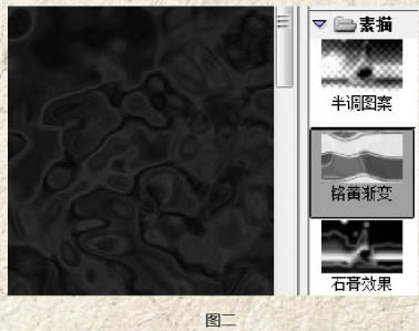 2、前景色設(shè)置為深藍色,背景色為黑色,執(zhí)行:濾鏡 > 渲染 > 云彩,確定后再執(zhí)行:濾鏡 > 濾鏡庫 > 素描 > 鉻黃漸變,這一步是為了做液態(tài)的背景。