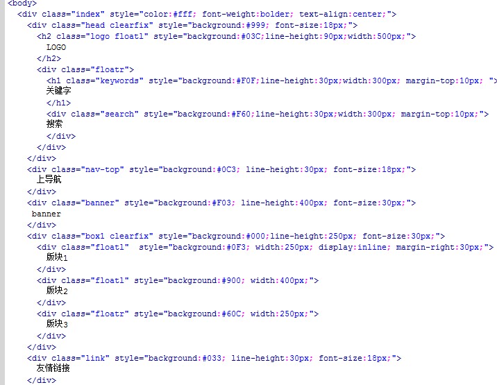 html就是用div堆起來了,當(dāng)然也有其他標(biāo)簽(<p>,<span>,<ul>等),這些標(biāo)簽可以更好的輔助div排版。而css里就是各種樣式,有時(shí)也會(huì)引用一些其他文件。