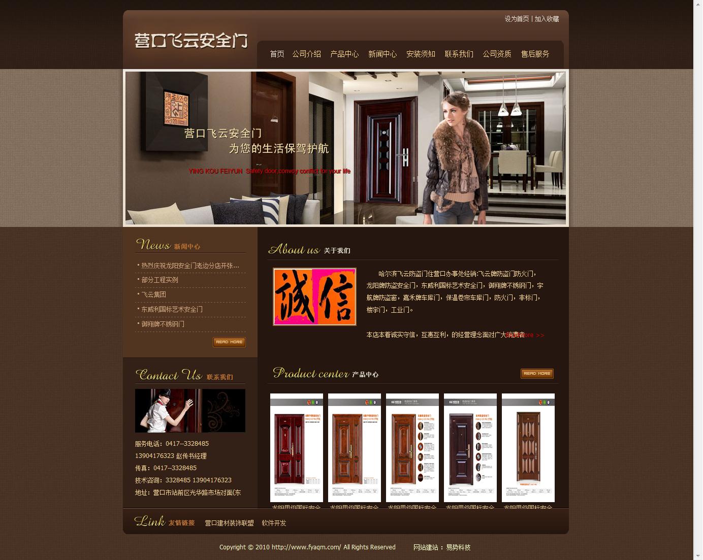 網(wǎng)站簡介: 營口飛云安全門主要經(jīng)銷飛云牌防盜門防火門,龍陽牌防盜安全門,東威利國標(biāo)藝術(shù)安全門,御翔牌不銹鋼門,宇航牌防盜窗,嘉禾牌車庫門,保溫卷簾車庫門,防火門,非標(biāo)門,樓宇門,工業(yè)門。營口飛云安全門的網(wǎng)站主要有7個(gè)板塊,支持信息發(fā)布、產(chǎn)品展示、友情鏈接等功能。公司主要通過新聞中心板塊更新該行業(yè)相關(guān)資訊和公司新聞,同時(shí)瀏覽網(wǎng)站的用戶可以通過產(chǎn)品中心了解該公司的產(chǎn)品,產(chǎn)品中心有營口飛云安全門產(chǎn)品的圖文介紹,使瀏覽該公司網(wǎng)站的用戶通過這種圖文并茂的方式對該公司產(chǎn)品有更加直觀、準(zhǔn)確的了解。