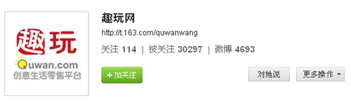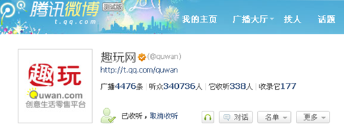 微博是非常優(yōu)秀的客服工具,也是潛心和用戶互動的很好平臺,Twitter上已經(jīng)有非常多的企業(yè)做出了成功案例,不必再對此進(jìn)行論證了,而這點(diǎn)可能是趣玩網(wǎng)的缺失之處。