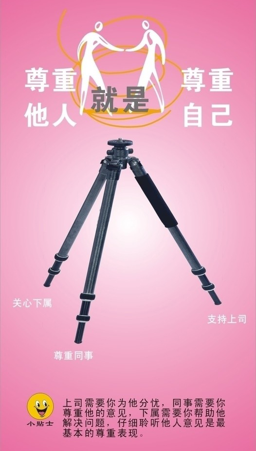 尊重,不要再滿足于每天叫一聲老師好,每次做事時說句您請您請,不要每回夸別人時自己都想找個塑料袋。真心地體諒別人,看到別人的優(yōu)點,特別是發(fā)自內(nèi)心地尊重你身邊的平凡的人,因為他們自有他們的偉大之處,是值得尊重的。